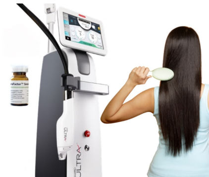Keralase is a proprietary, cutting-edge treatment using the Lutronic ULTRA laser to combat hair loss, hair thinning, and excessive shedding. In our two-part procedure, the ULTRA laser creates tiny microchannels in the scalp. We then apply a unique growth factor-enhanced, protein-enriched serum to the skin to facilitate the growth of healthier, more youthful hair.